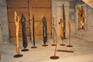 De l'autre, l'atelier de la Fabrique, qui retrouve son rythme quotidien. Avec l'installation des pièces de Jérôme GALVIN, invité de la Fabrique pour cet été, avec Marie DELAFOSSE, qui positionne ses pièces, avec les élus qui passent et observent ce mouvement perpétuel,...